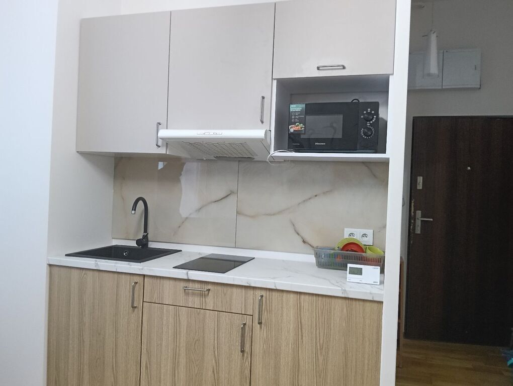 - kuchnia wyposażona w meble, płytę elektryczną, mikrofalę