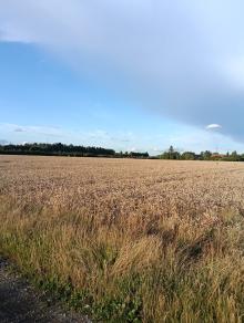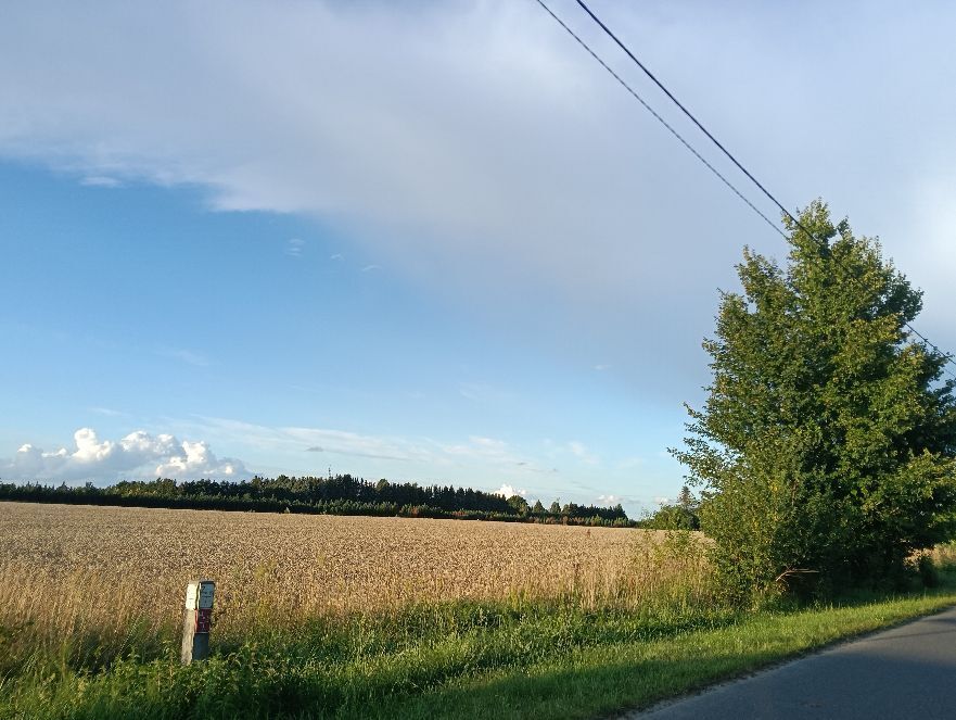 Działka widoczna na załączonych zdjęciach, o kształcie kwadratu ok. 40 metrów na 38 metrów.